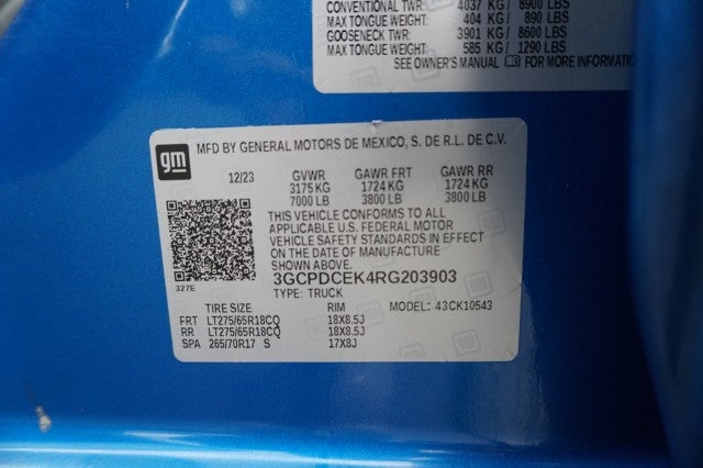 Wi-fi hotspot capable (terms and limitations apply. see onstar.com or dealer for details.)|audio system, chevrolet infotainment 3 system 7 diagonal hd color touchscreen, am/fm stereo, bluetooth audio streaming for 2 active devices, voice command pass-through to phone, wireless apple carplay and wireless android auto compatibility|bluetooth for phone, connectivity to vehicle infotainment system|wireless phone projection for apple carplay and android auto|audio system feature, 6-speaker system|cornerstep, rear bumper|bumper, front (high gloss black.)|bumper, rear (high gloss black.)|cargo tie downs (12), fixed rated at 500 lbs per corner|lamps, cargo area, cab mounted integrated with center high mount stop lamp, with switch in bank on left side of steering wheel (incandescent on regular cab models, led on crew cab and double cab models)|tire carrier lock, keyed cylinder lock that utilizes same key as ignition and door|tailgate, standard|tires, lt275/65r18c blackwall goodyear wrangler territory mt|tailgate and bed rail protection cap, top|mirrors, outside heated power-adjustable|tailgate, gate function manual with ez lift includes power lock and release|wheels, 18 x 8.5 (45.7 cm x 21.6 cm) high gloss black painted aluminum|glass, deep-tinted|tire, spare 265/70r17sl all-season, blackwall|led cargo area lighting located in pickup bed, activated with switch on center switch bank or key fob|intellibeam, automatic high beam on/off|taillamps with incandescent tail, stop and reverse lights|door handles, black|headlamps, halogen reflector with halogen daytime running lamps|wheel, 17 x 8 (43.2 cm x 20.3 cm) full-size, steel spare|floor mats, rubberized vinyl, front (deleted when lpo floor liners are ordered.)|power outlet, bed mounted, 120-volt (400 watts shared with (ki4) interior power outlet)|steering wheel, urethane|usb ports, 2, charge/data ports located on instrument panel|seat adjuster, passenger 4-way manual|cruise control, electronic with set and resume speed, steering wheel-mounted|power outlet, front auxiliary, 12-volt|windows, power rear, express down|power outlet, interior power outlet, 120-volt (400 watts shared with (kc9) bed mounted power outlet)|theft-deterrent system, unauthorized entry|window, power front, passenger express down|assist handles front a-pillar mounted for driver and passenger, rear b-pillar mounted|chevrolet connected access capable (subject to terms. see onstar.com or dealer for details.)|remote vehicle starter system|driver information center, 3.5 diagonal monochromatic display|floor covering, color-keyed carpeting|seat adjuster, driver 10-way power including lumbar|floor mats, rubberized-vinyl rear (deleted when lpo floor liners are ordered.)|seat trim, cloth|air vents, rear, heating/cooling|remote keyless entry, with 2 transmitters|instrument cluster, 6-gauge cluster featuring speedometer, fuel level, engine temperature, tachometer, voltage and oil pressure|seats, front 40/20/40 split-bench with covered armrest storage and under-seat storage (lockable)|usb ports, rear, dual, charge-only|door locks, power|air conditioning, single-zone manual|compass located in instrument cluster|mirror, inside rearview, manual tilt|seat, rear 60/40 folding bench (folds up), 3-passenger (includes child seat top tether anchor)|defogger, rear-window electric|window, power front, drivers express up/down|exterior temperature display located in radio display|steering column, tilt-wheel, manual with wheel locking security feature|recovery hooks, performance red|skid plates|hill descent control|brake lining wear indicator|rear axle, 3.42 ratio|battery, heavy-duty 730 cold-cranking amps/80 amp-hr, maintenance-free with rundown protection and retained accessory power|transmission, 8-speed automatic, electronically controlled with overdrive and tow/haul mode. includes cruise grade braking and powertrain grade braking (included and only available with (l3b) turbomax engine. requires (az3) front 40/20/40 split-bench seats.)|air filter, heavy-duty|capless fuel fill|steering, electric power steering (eps) assist, rack-and-pinion|gvwr, 7000 lbs. (3175 kg) (requires (l3b) turbomax engine.)|four wheel drive|frame, fully-boxed, hydroformed front section|brakes, 4-wheel antilock, 4-wheel disc with duralife rotors|auto-locking rear differential|exhaust, single outlet|automatic stop/start|durabed, pickup bed|transfer case, two-speed electronic autotrac with push button control (4wd models only)|alternator, 220 amps (included and only available with (l3b) turbomax engine or (lz0) duramax 3.0l turbo-diesel i6 engine.)|engine, turbomax (310 hp [231 kw]